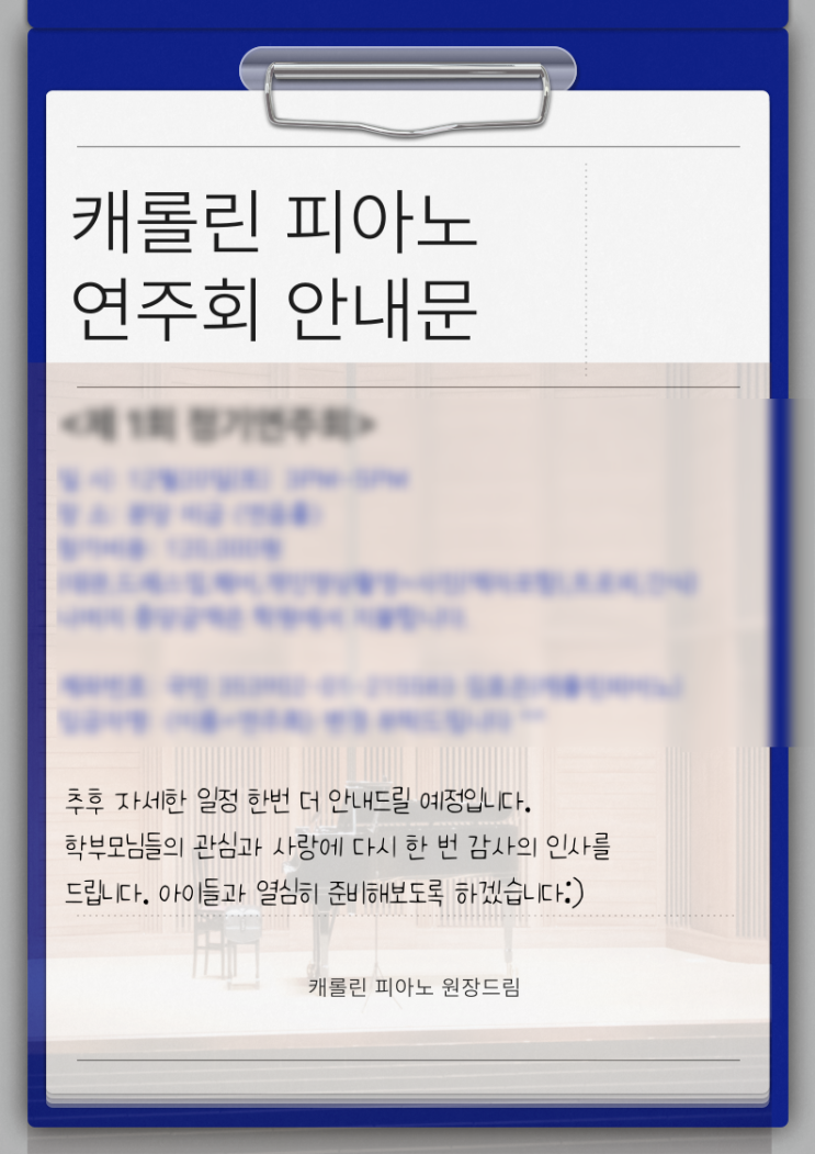 [상현역/새빛초/이의초]캐롤린피아노 정기연주회 안내문