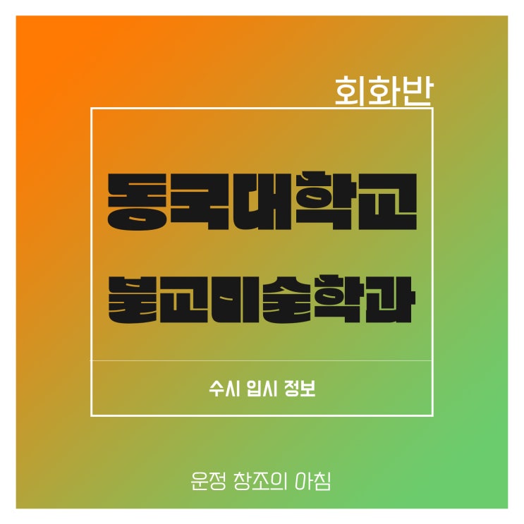 안녕하세요! 운정 창조의 아침입니다. 오늘은 "소묘"로 대학입시가 가능한 학교 중 한곳인 동국대학교 서울캠퍼스 "불교미술학과" 입시정보입니다. 전 세계적으로 한국의 문화가 뜨겁게 떠오르고 있죠? 그렇다 보니 외국인들의 불교에 대한 관심도 많이 높아졌다고 합니다. 디자이너를 희망하는 학생들도 있지만 시대적 흐름을 읽는 학생들이 원하는 과중에 한곳이기도 합니다. 미술학부(45명 정원) 안에서 불교미술학과는 15명을 모집 선발합니다. 실기 70% 교과 20% 출결 10% 합산 100% 비율입니다. 학생부는 국어 영어 수학 과학 한국사 중에서 상위 등급 10과목에 해당되며 이수단위는 미적용됩니다. 실시고사는 정물 소....... <img src="https://blogthumb.pstatic.net/MjAyNjAzMDVfMjEy/MDAxNzcyNjk2NjA3MDQy.-fq6LZU32z9qb7DoV2Ej9ZYpyyjMZxFrB-22JfGkLq0g.dc47eLaxtNtcELLzYlj3mqvSjzJvV8il9bAwFMkISxMg.JPEG/4.jpg?type=s3" />