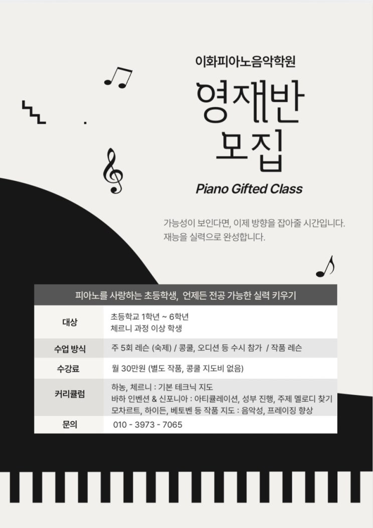 [초롱꽃마을 이화피아노음악학원] 피아노 영재반 모집
