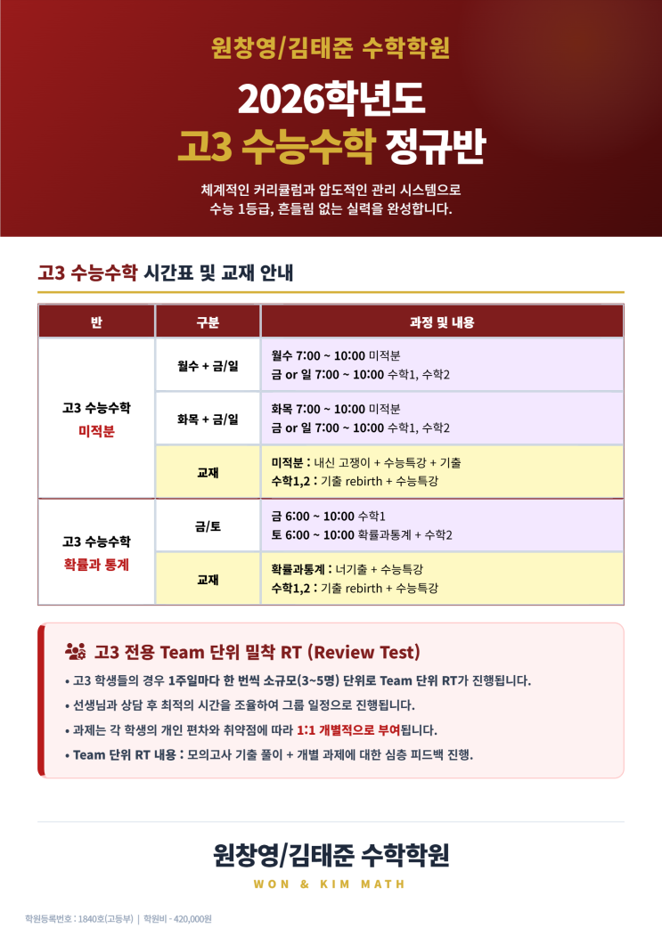 [원창영 / 김태준 수학] 고3 수업 및 수리,인문논술 안내