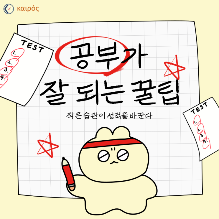공부는 꾸준함이 답이다 – 카이로스와 함께라면 가능합니다 우리는 흔히 ‘단기간에 몰아서 공부하면 된다’고 생각하곤 합니다. 시험 전날 밤을 새우거나, 주말에만 몰아서 공부하는 것… 정말 가능할까요? 솔직히 말하면, 그렇게 얻은 지식은 오래가지 않습니다. 머릿속에 잠깐 남아 있을 뿐, 시험이 끝나면 금세 잊혀지기 쉽죠. 그리고 무엇보다, 그런 공부 습관은 몸과 마음을 지치게 하고, 자신감을 깎아내립니다. 그렇다면 공부의 진짜 정답은 무엇일까요? 바로 꾸준함입니다. 작게라도 매일 공부하는 습관, 조금씩 목표를 향해 나아가는 과정, 계획을 지켜나가는 성실함. 이런 꾸준함이 쌓일 때, 비로소 실력과 자신감이라는 큰 결실이 찾....... <img src="https://blogthumb.pstatic.net/MjAyNjAxMThfOTEg/MDAxNzY4NzA3NzQyMjQ3.mLML7QY3QaSgByAdWF0BfrVJXN8PUKAl9KOxCZheOlUg.U5t0cCPSUL3H6vQ3vntqBQSIkFiou8SqWH97pwxTKf0g.PNG/001.png?type=s3" />