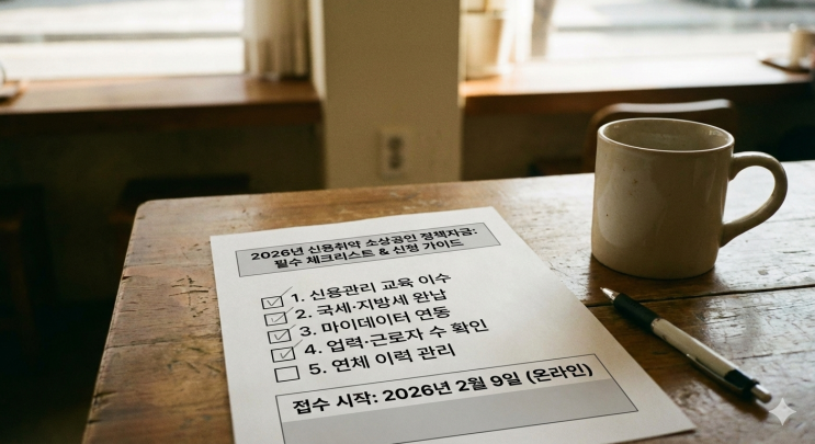 2026년 2월 9일부터 시작되는 신용취약 소상공인 정책자금, 조건만 맞으면 끝일까요? 승인 확률 90%를 결정짓는 필수 사전 체크리스트 5가지와 신청 방법을 2026년 최신 기준으로 완벽 정리해 드립니다. 신용취약 소상공인 정책자금 신청 방법 | 지원 조건 | 2026년 최신판 2026년 2월 9일, 저신용으로 인해 시중 은행 이용이 어려운 사장님들을 위한 '신용취약 소상공인 정책자금' 접수가 시작되었습니다. 단순한 대출 신청을 넘어, 이번 차수에는 승인 확률을 극대화하기 위해 반드시 미리 준비해야 할 5가지 핵심 요소가 존재합니다. 요건을 갖추고도 서류 미비나 사전 교육 미이수로 탈락하는 안타까운 상황을 방지할 수 있도록 실....... <img src="https://blogthumb.pstatic.net/MjAyNjAyMTFfMjE2/MDAxNzcwNzc2ODY0MTYw.0hslgjJKS499Jk3LPOVfPA5ym2THz25io9zRfWY8Jscg.QxE0DHvx_fQU02fGK8_wDzk1MHF81wDT0fnVSObAtFMg.PNG/%BD%C5%BF%EB%C3%EB%BE%E0_%BC%D2%BB%F3%B0%F8%C0%CE_%C1%A4%C3%A5%C0%DA%B1%DD_%BD%C5%C3%BB_%B9%E6%B9%FD__%C1%F6%BF%F8_%C1%B6%B0%C7__2026%B3%E2_%C3%D6%BD%C5%C6%C7Gemini_Generated_Image_3fmdi43fmdi43fm.png?type=s3" />