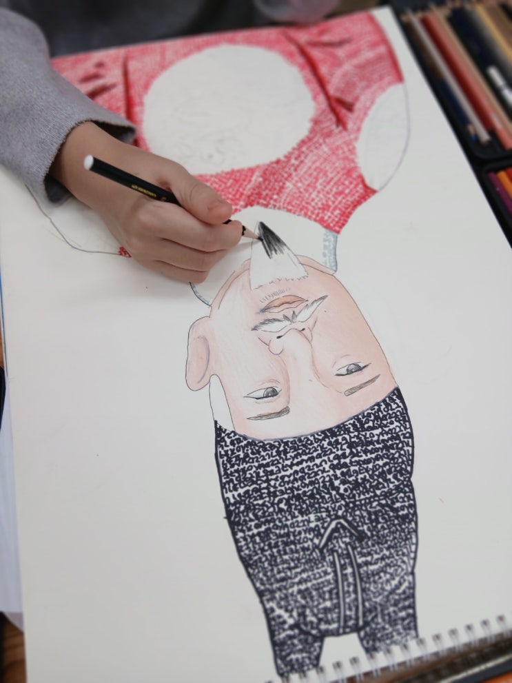 세종대왕님 어진그리기& 서예 수업 안녕하세요 리움미술 입니다 이번 수업은 우리 친구들들이 한국 전통 예술을 경험하며 역사·회화·서예를 통합적으로 배울 수 있도록 구성된 시간이에요. 세종대왕님의 어진(왕의 초상화)을 관찰해 그려보고, 문방사우를 활용해 서예까지 체험하는 풍부한 예술 감각 수업이 진행되었어요. 1. 세종대왕님 어진 그리기 – 관찰 기반 드로잉 아이들은 세종대왕님 어진을 보며 정면 얼굴의 이목구비 비례와 특징을 관찰하는 것부터 시작했습니다. *눈·코·입 위치의 균형 파악 *얼굴 형태와 왕의 복식 표현 이 과정은 단순한 따라 그리기 활동을 넘어, 아이들이 관찰력·비례 감각·세밀한 표현력을 자연스럽게 익....... <img src="https://blogthumb.pstatic.net/MjAyNTEyMDhfMjIg/MDAxNzY1MjAyODk4MDYx.6jnano3XHVffdVSZ7lr0YMbawRW_ENDYB3m5ygREfVgg.zvnHfJ6qe1DgKj-XZ1P2U_HOhFl3cVbjD3ins1ZQBkMg.JPEG/900%A3%DF20251031%A3%DF165701.jpg?type=s3" />