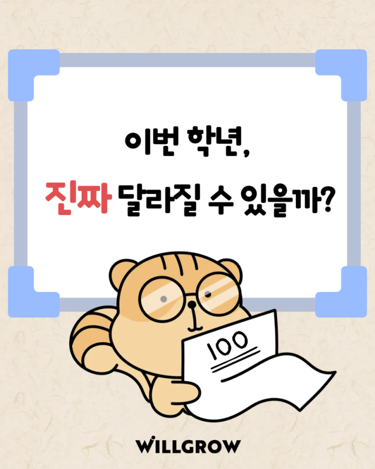 이번 학년, 진짜 달라질 수 있을까요? 새 학년이 시작되면 많은 어머님들이 같은 질문을 하십니다. “이번에는 영어가 좀 달라질 수 있을까요?” “학원은 다니는데 왜 실력이 그대로일까요?” 영어는 시간을 쌓는 과목입니다. 단기간 벼락치기로는 절대 달라지지 않습니다. ✅ 영어, 이렇게 하면 달라집니다. ✔ 개학 첫 주에 학습 루틴을 정합니다. → 공부는 ‘의지’도 중요하지만 ‘습관’또한 중요합니다. ✔ 틀린 문제를 그냥 넘기지 않습니다. → 실력은 맞힌 문제에서가 아니라 ‘틀린 문제를 복습할 때’ 자랍니다. ✔ 하루 20분이라도 매일 영어에 노출됩니다. → 짧아도 매일, 이것이 가장 강력합니다. 윌그로우에서는 학생별 학....... <img src="https://blogthumb.pstatic.net/MjAyNjAzMDNfMTUz/MDAxNzcyNTE5NjI5Nzk2.f_Rjec_cBRIxnp1u-HPD_Xn0PG5c9E6-z_DhYp_H0VIg.XaioZQyFK3zhFFlpj-rToLIBMFQ4MtorUI1nuSaovkwg.PNG/IMG%A3%DF4671.PNG?type=s3" />