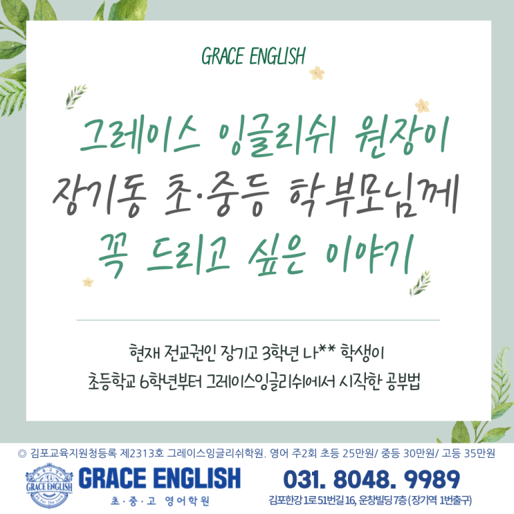 Grace English 원장이 초중등 학부모님께 꼭 드리고 싶은 이야기