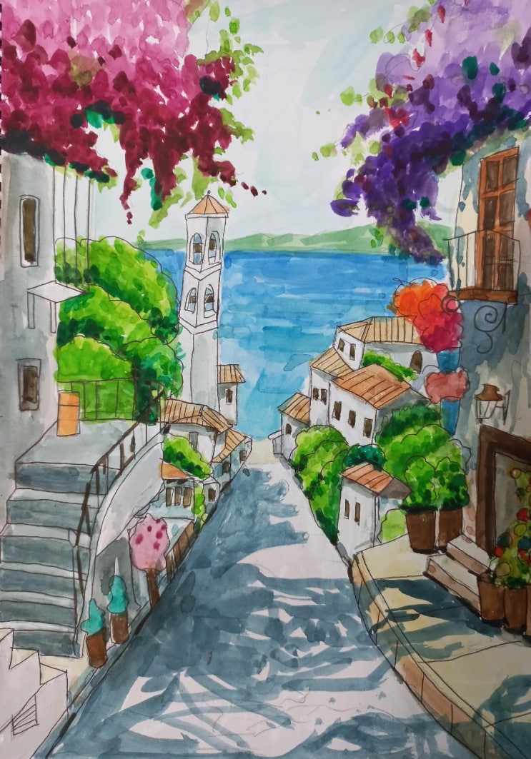 고흐숲 미술창작소♡미술학원 #양곡미술학원 #학운리미술학원 #나비초미술학원 #한가람초미술학원 #솔터초미술학원 #호수초미술학원 #구래초미술학원 #구래동유아미술 #구래동초등미술 #구래동아동미술 #구래동미술 #마산동미술 #구래동중고등미술 #김포한강미술학원 #반디유치원미술 #구래동저학년미술 #구래동고학년미술 #구래동애니미술 #구래동웹툰미술 이번시간 제인이는 바다가 보이는 골목의 풍경을 수채화로 표현했어요 투시도에 맞게 스케치한 후 수채화물감으로 물조절하며 채색해주었어요 그림자부분도 표현하며 멋지게 완성해주었어요 제인아 잘했어 <img src="https://blogthumb.pstatic.net/MjAyNjAyMjZfOTQg/MDAxNzcyMDgzNTQ4NDM1.53kj-Sv-ofpgns0yoLBy_n4um_W2dFCxsJ6Pf3hQ1YQg.R8ilqzlUfV-RdKyI_PZ8u6o7jCWrGvoPaa8XFZ3ORG8g.JPEG/900%A3%DF1772083532710.jpg?type=s3" />