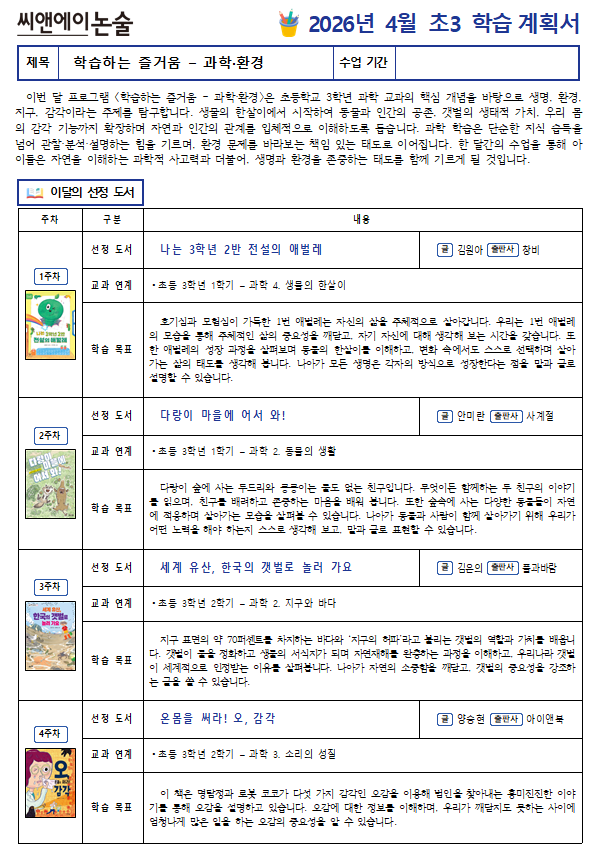 2026년 4월 초3 학습 계획서 - <학습하는 즐거움-과학·환경>