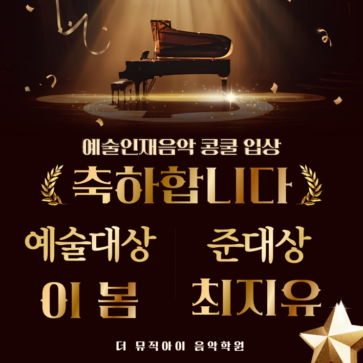 콩쿨은 아이들의 성장 과정입니다 김포 장기동 운유초 앞에 위치한 더 뮤직아이 음악학원입니다. 지난 2월 28일 토요일, 예술인재 음악콩쿠르에서 우리 뮤직아이들이 수상을 하게되어 기쁜 소식을 전하게 되었습니다. 무대 결과도 감사하지만, 이번 콩쿨에서 특히 마음에 남았던 것은 심사평이었습니다. “기본기가 좋다.” “팔과 몸을 잘 사용했다.” "선생님께 곡을 잘 배웠다." 콩쿨 심사 교수님들의 심사평을 받고 읽는데, 잠시 울컥하였습니다. 콩쿨 심사평에는 보통 아이들의 연주에 대한 평가가 담겨있는데, 지도자인 제 칭찬을 해주셔서 저에게 큰 의미로 다가왔습니다. 기본기는 하루아침에 만들어지지 않습니다. 속도....... <img src="https://blogthumb.pstatic.net/MjAyNjAzMDFfMTEy/MDAxNzcyMzMwMTc2MjEz.5VlQ31DhimcSlkRpi6AwQc8xyRK2a2EPbYVosTPQnGog.tKp6toL_9Ul01nIRHHswnFtbHL3elQUp8z6_CiS1b9cg.PNG/1.png?type=s3" />