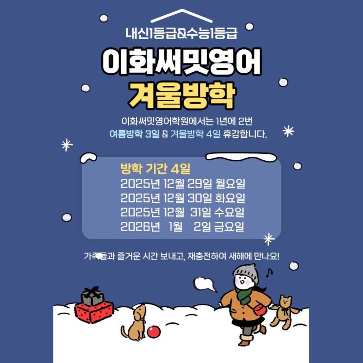 기말고사 이후 수업시간 안내 및 이화써밋영어학원 겨울방학 휴강 안내