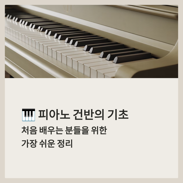 피아노 건반의 기초 처음 배우는 분들을 위한 가장 쉬운 정리 “피아노를 시작할 때 가장 먼저 익혀야 할 것은 악보보다 건반의 구조입니다” 피아노는 처음 보면 복잡해 보일 수 있습니다. 하지만 건반의 기본 원리만 이해하면 생각보다 훨씬 단순합니다. 오늘은 피아노 건반의 기초를 처음 배우는 분들도 이해하기 쉽게 정리해보겠습니다. “피아노 건반은 흰 건반과 검은 건반으로 구성되어 있습니다” 피아노 건반은 크게 두 가지로 나뉩니다. 흰 건반 그리고 검은 건반입니다. 이 두 가지가 일정한 규칙에 따라 반복되며 배치되어 있습니다. “흰 건반은 총 7개의 기본 음으로 이루어져 있습니다” 흰 건반은 도 · 레 · 미 · 파 · 솔 · 라 ·....... <img src="https://blogthumb.pstatic.net/MjAyNTEyMzFfMjEz/MDAxNzY3MTE1MDQ1MzE1.hDsi4Anr2kFgib75hADtjfVlFLbYK0Hc5vEgi_fwBS8g._N9AGoE72ni99GpN3yBWWvGECLmjZotqXO_WJje3r9Ig.PNG/1_.png?type=s3" />