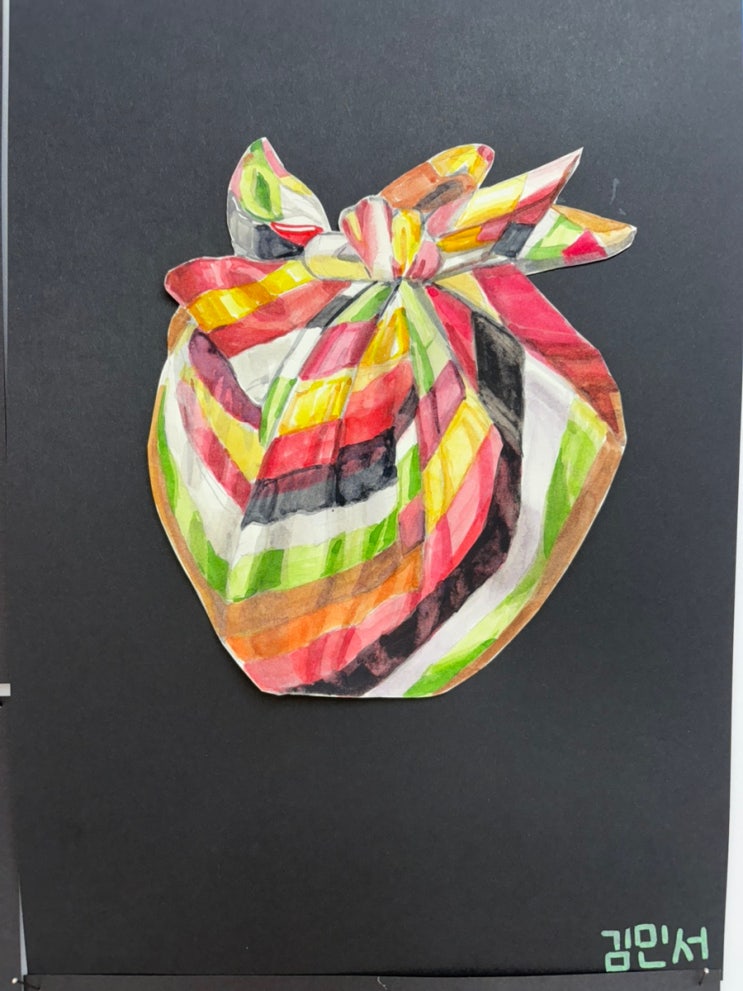 이번 수업은 김시현 작가의 보자기 작품을 오마주하여 진행한 수채화 작업입니다. 아이들은 보자기의 주름과 매듭을 관찰하며 빛과 그림자의 변화를 색의 농담으로 표현해 보았습니다. 알록달록한 색감과 각기 다른 패턴을 더해 전통적인 소재를 자신만의 감성으로 재해석했어요. 같은 ‘보자기’이지만 아이들마다 전혀 다른 분위기로 완성된 작품들 속에서, 표현의 다양성과 개성을 느낄 수 있는 시간이었습니다. <img src="https://blogthumb.pstatic.net/MjAyNjAyMjdfNzUg/MDAxNzcyMTk1ODI1MTgy.Ij4gsbWnPJ3VgLv2V270GeTBxfUtHnrygXwbx0vNQjwg.KhRRVwYW2mkiy58tIyVGdrNZlgFF5x8l1NdeOWejlTQg.JPEG/IMG%A3%DF2712.jpg?type=s3" />