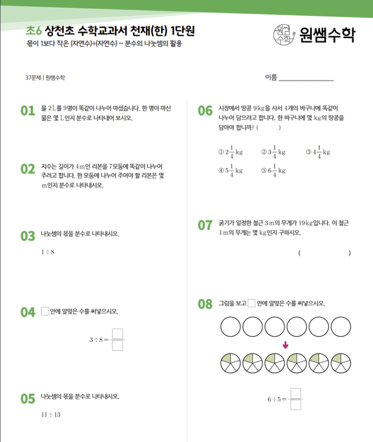 학교별 초등수학교과서 문제풀기