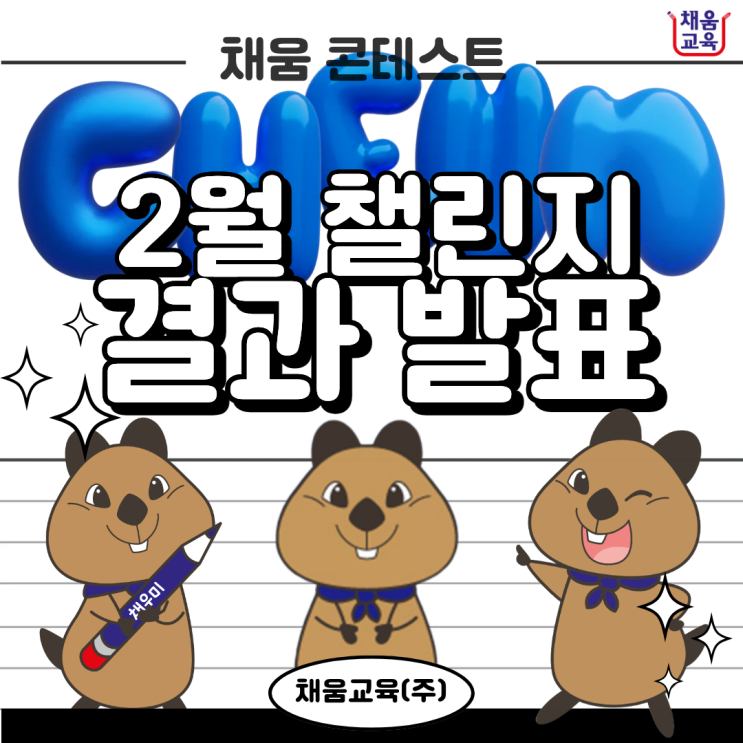 채움학원 2월 챌린지 결과발표, 영어단어왕, 수학풀이과정 챌린지 결과 발표!! 자랑스러운 채움인입니다!