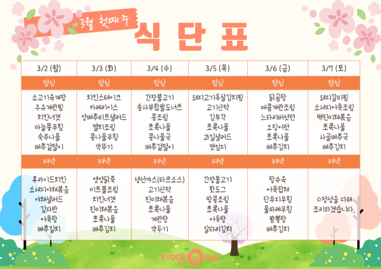 노원독학재수학원 [2026년 3월 첫째 주 급식 식단표] 노원구 하계동_노원독재_노원독학재수_관리형재수학원_재수정규반_이투스247강북학원_하계동_의대_약대진학