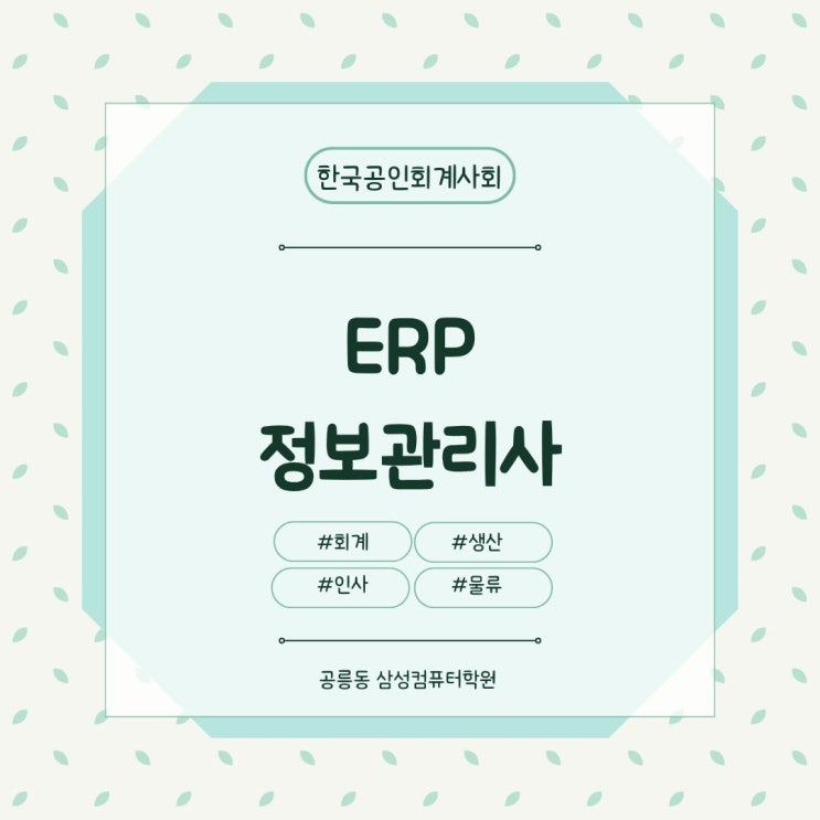 [노원구/공릉동/삼성컴퓨터학원] 2026년 ERP(회계/인사/물류/생산) 시험일정