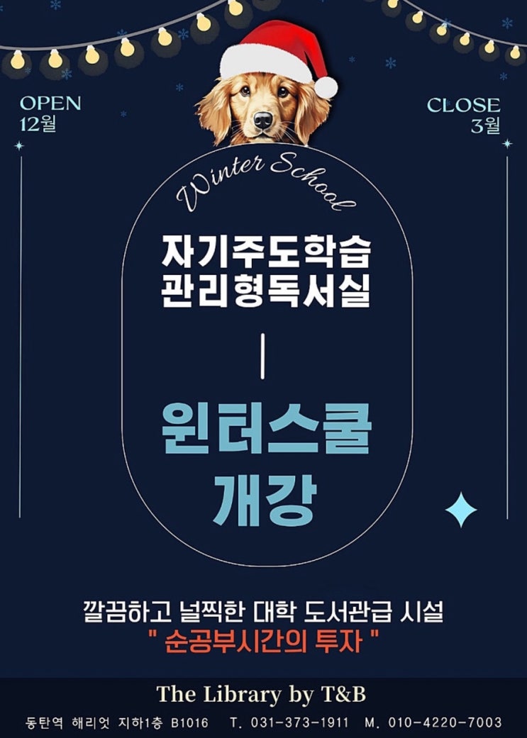 ★★★윈터스쿨 예약 오픈★★★ 방학이 되기 전 많은 학부모님들이 문의 전화를 주십니다. 우리 아이... “학원은 다니는데, 성적이 그대로예요.” “집에서는 루틴이 너무 쉽게 무너져요.” 제 경험으로 말씀드리면, 이 문제는 의지의 문제가 아닙니다. 대부분 아이들은 스스로 공부 구조를 만들 수 없는 상태에 있거든요. 어떤 방식으로 공부해야 하는지 모르고, 어디서 틀리고 있는지도 모르고, 환경을 스스로 통제할 힘도 부족하죠. 그래서 겨울방학이 결정적입니다. 이 시기를 어떻게 보내느냐에 따라 내년 성적이 달라지니까요. 왜 아이들은 공부를 어려워할까요? 성적이 잘 오르지 않는 아이들에게서 자주 보여지는 패턴이 있어요. 책상....... <img src="https://blogthumb.pstatic.net/MjAyNTExMjlfMTA2/MDAxNzY0Mzk0MzIyNDkx.KSJiG86hA-2iFnds7x37mMUGoJ8LZpM17yaZPFoNGS4g.CI5Pa3xmlyuu573qk3ZH_CB2qEqGEUN5GZ2hVN1-eFIg.JPEG/IMG%A3%DF7237.jpg?type=s3" />