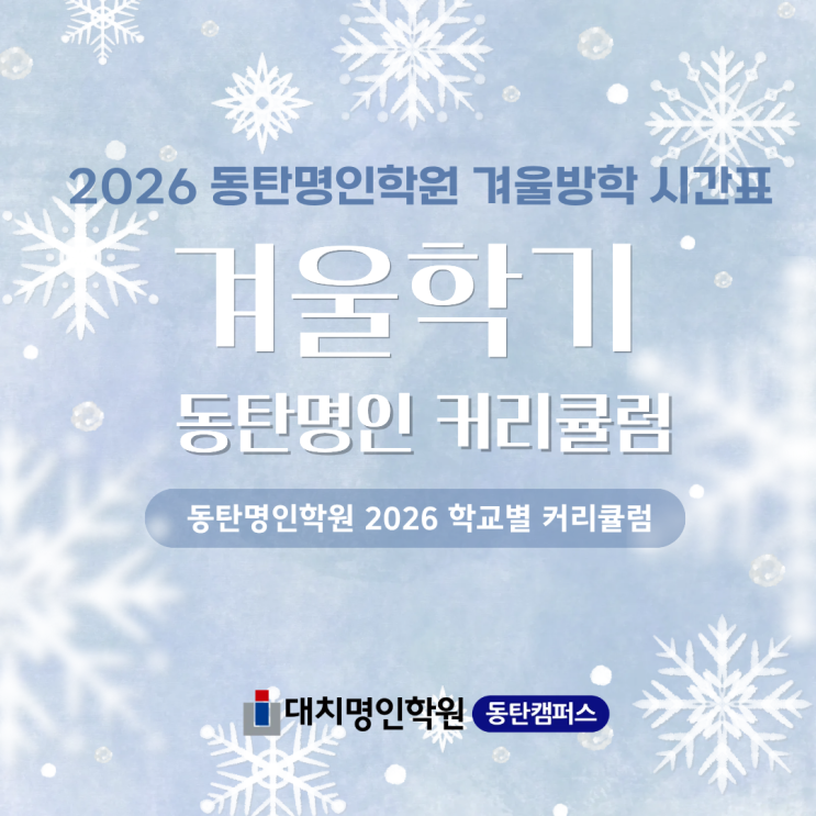 1학년 부터 3학년까지 동탄명인학원 겨울방학 시간표 몰아보기 " 2026년 고득점을 위한 전부를 준비했습니다!!!" 국제고 1,2학년 겨울방학 시간표 병점고 1,2학년 겨울방학 시간표 세마고 1,2학년 겨울방학 시간표 반송고 1학년 겨울방학 시간표 이산고 1,2학년 겨울방학 시간표 고등 3학년 겨울방학 시간표 전학년 촘촘한 겨울학기 시간표로 2026년 1등급을 만들어갑니다! 1학년 수강신청 2학년 수강신청 3학년 수강신청 #대치명인학원 #동탄캠퍼스 #6월모의고사 #학평분석 #모의고사분석 #학평등급컷 #수능영어 #수능국어 #수능수학 #과학탐구 #인문논술 #고등내신전문구 #인....... <img src="https://blogthumb.pstatic.net/MjAyNjAxMDdfMTQ4/MDAxNzY3NzY4MzEzMTI3.-alzbIZVU2xBNXfsP_8MnBUxblGeUn0j8mBHuYu4hZcg.0O3-x1I2wH2xL8njeplRSVvmyJHiKixOHG6Kbe_MvHsg.PNG/%C1%A6%B8%F1%C0%BB_%C0%D4%B7%C2%C7%D8%C1%D6%BC%BC%BF%E4._%2823%29.png?type=s3" />