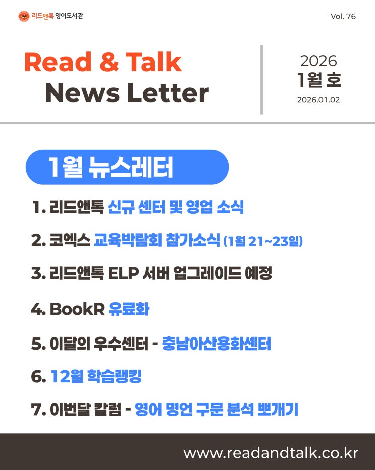 [봉담영어학원] 리드앤톡 1월 뉴스