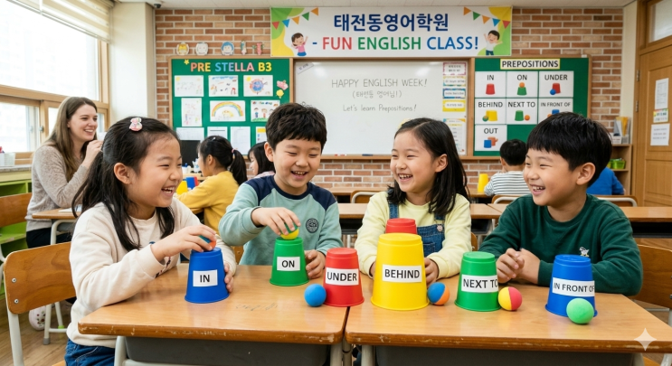 안녕하세요! 우리 아이들의 영어 성장을 위해 늘 고민하고 실천하는 태전동영어학원 광남파머스 영어의 에릭원장쌤입니다. 영어를 배우다 보면 문법의 벽에 부딪히는 순간들이 있죠? 특히 '전치사'는 짧은 단어들이지만, 문장의 의미를 결정짓는 아주 중요한 역할을 합니다. 하지만 단순히 책상에 앉아 "in은 ~안에", "on은 ~위에"라고 외우기만 하면 금방 잊어버리기 일쑤인데요. 이번 금요일, 저희 태전동영어학원, 광남파머스에서는 아이들이 전치사를 '공부'가 아닌 '놀이'로 완벽하게 체득할 수 있는 특별한 액티비티 시간을 가졌습니다! 파닉스 그 다음 단계, Pre Stella 시리즈 중....... <img src="https://blogthumb.pstatic.net/MjAyNjAzMDZfMjE5/MDAxNzcyODA3ODgwMjE1.9J3J3OPciezJWsW6B2SFUsjBE4Es-RCT2P6KeJFwJgQg.458S-LRi_8FSgitZyVk3J-MPOZEJ-JE0wki-VfmxMPUg.PNG/Gemini_Generated_Image_e0qeufe0qeufe0qe.png?type=s3" />