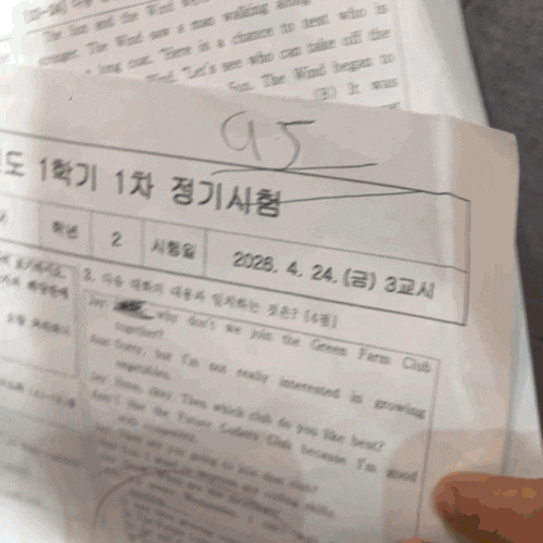 오늘 학원 카드 쏜 이유 있습니다 (레전드 점수 등장) 안녕하세요, 태전동 탑앤탑 영어전문학원입니다. 오늘 태전중학교 1학기 중간고사가 모두 마무리되었습니다. 4월 23일부터 24일까지 이틀간 진행된 시험 일정 속에서, 오늘은 영어 과목 시험을 끝으로 아이들의 긴장이 비로소 풀리는 날이었습니다. 시험이 끝나자마자 가채점 결과를 들고 학원으로 연락을 주고, 또 직접 시험지를 들고 달려와 주는 아이들을 보면서, 이 직업을 선택하길 참 잘했다는 생각이 다시 한 번 들었습니다. 시험 직후 들뜬 얼굴로 “쌤! 저 이거 맞았어요!” 하며 하나하나 짚어보는 모습, 그리고 기대 반 걱정 반으로 점수를 확인하는 그 순간들 속에서 아이들의 노....... <img src="https://blogthumb.pstatic.net/MjAyNjA0MjRfODMg/MDAxNzc3MDA4MzMzMTUw.EDgGRypirQ6S_6L603tOObbL7yOeOj01tXOw6hP7nbwg.HAs4_ILVrSOyneco1C-gpwA8vqM8AKgS4ibf3qTynuMg.GIF/4085331297.gif?type=s3" />