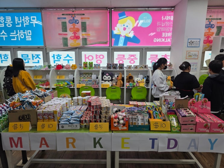 안녕하세요, 어느덧 새해가 밝아 2026년이 되었네요! 지난 2025년의 마지막 달인 12월, 아이들과 함께한 크리스마스 마켓 데이가 열렸어요. 이번 마켓 데이는 단순히 “선물을 주는 날”이 아니라 아이들이 한 해 동안 열심히 공부하며 스스로 만들어 온 결과를 함께 기념하는 시간이었습니다. 아이들이 고를 수 있는 선물과 간식들을 준비했어요! 익숙한 교실이지만, 이 날만큼은 공부하는 공간이 아니라 선물을 고르고, 즐기는 공간이 되었어요! 아이들은 들어오자마자 선물 고르기에 열중하며 “이거 쿠폰 몇 개예요?” 하며 눈을 반짝였답니다.^^ 저희 수학여행의 쿠폰은 하루, 이틀 잘했다고 바로 받을 수 있는 것이 아닙니다. 수업에 집중....... <img src="https://blogthumb.pstatic.net/MjAyNjAxMDRfMTQ4/MDAxNzY3NTI2ODQ1NTUy.Xg672_H691P4BvHb7QeIykMxJ-JMj18v2Btx5D0VESsg.9rOCn68qaTTKZfC31uxKahbnoZ1F7kBHnVkxL3UR1Ckg.JPEG/KakaoTalk_20260104_194735249_01.jpg?type=s3" />