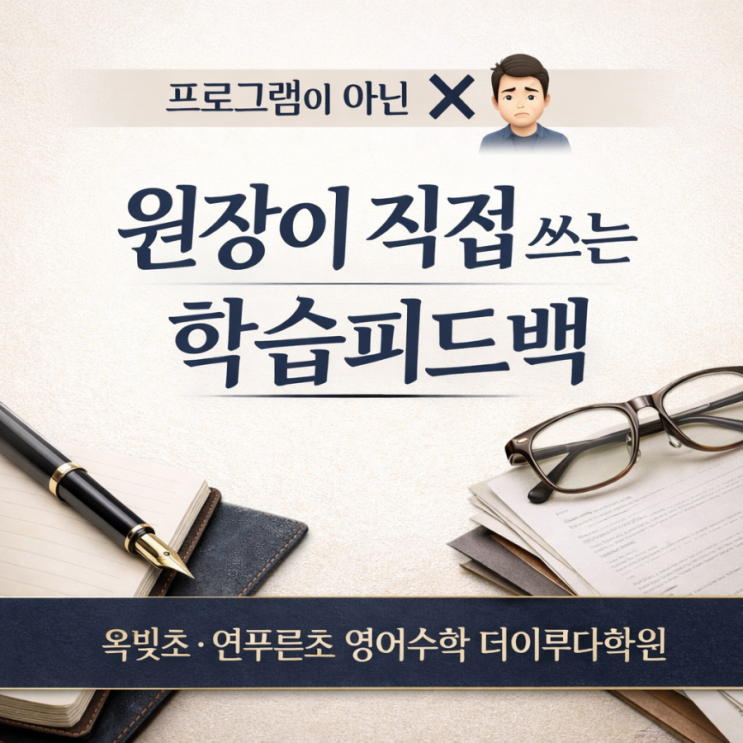프로그램이 아닌 ♂️ 원장이 직접 쓰는 학습피드백 ♂️ 옥빛초 연푸른초 영어수학 더이루다학원 “더이루다학원은 자동프로그램이 아닌 수업에서 아이가 어땠는지”를 직접 씁니다. 요즘 학습리포트는 대부분 프로그램으로 자동 출력됩니다. 이름만 바뀌고 문장은 비슷한 경우가 많죠. 하지만 더이루다학원은 다릅니다. AI나 프로그램이 아닌, 각 과목 지도 담당 원장님이 직접 한 줄 한 줄 작성합니다. 아이의 표정, 문제를 풀 때의 습관, 틀린 이유까지 떠올리며 기록합니다. 이 차이가 옥정 영어학원 옥정 수학학원 더이루다의 방향입니다. 더이루다학원은 아날로그 학습리포트를 씁니다. 영어는 2권의 교재 수학은 학기....... <img src="https://blogthumb.pstatic.net/MjAyNjAyMjZfNTAg/MDAxNzcyMDg1ODI0NDU2.mourlna3d4B4Py_xvBTht8O0FNlQ7JGmFwsjLmGwMxYg.dXkTkm0J7RCCPhPrfrB9u8bxOQoNNl6l62-HP1hIln4g.PNG/900%A3%DFfile%A3%DF00000000e11471fab1efb1140ec8c7b3.png?type=s3" />