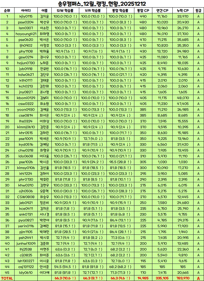 지앤비 송우캠퍼스 전원 A grade 달성 <img src="https://blogthumb.pstatic.net/MjAyNTEyMTVfMjM3/MDAxNzY1Nzk3MzM4Mjg0.ZR9nkfRvjWPZYFN7Rl-yngTbwFk7OWflLP5OdR7HYV8g.5sIBwmI3N4rhRFtFq3H8lkD39vxFCZxAFc2M1PVI9zog.PNG/KakaoTalk_20251212_134452404.png?type=s3" />