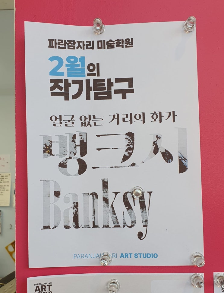 안녕하세요, 파란잠자리 미술학원입니다! 이번 수업은 얼굴 없는 거리 예술가, 뱅크시(Banksy)를 통해 예술이 세상을 어떻게 변화시키고 질문을 던지는지 함께 탐구해 보았어요. . . . 거리의 벽을 캔버스로 삼은 예술가, 뱅크시 뱅크시는 미술관이나 갤러리라는 한정된 공간을 넘어, 우리가 숨 쉬는 거리의 벽과 건물을 캔버스로 삼아요. 그는 예술은 누구나 자유롭게 볼 수 있어야 한다는 생각으로 전쟁, 폭력, 불평등과 같은 복잡한 사회 문제들을 아이, 쥐, 풍선 등 친숙한 이미지를 통해 쉽고 위트 있게 풀어내지요. 처음에는 재미있어 보이지만, 가만히 들여다보면 우리를 다시 생각하게 만드는 힘. 그것이 바로 뱅크시가 가진 예술의 힘입....... <img src="https://blogthumb.pstatic.net/MjAyNjAzMTJfNjIg/MDAxNzczMjQ1MzAzMTE1.LiHEXbT5qTMtVXasVs4j5FOsxvFMlViJPDoKDkTUM64g.0SO8I0l4hzAA2fiqzKyWLDN7Sw2hny--EMginH01EYEg.JPEG/1._%B9%F0%C5%A9%BD%C3_%BC%D2%B0%B32.jpg?type=s3" />