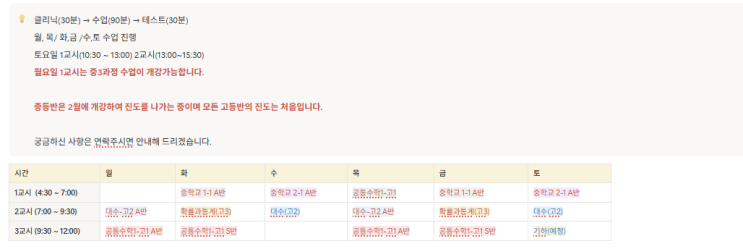 수업 및 반 편성