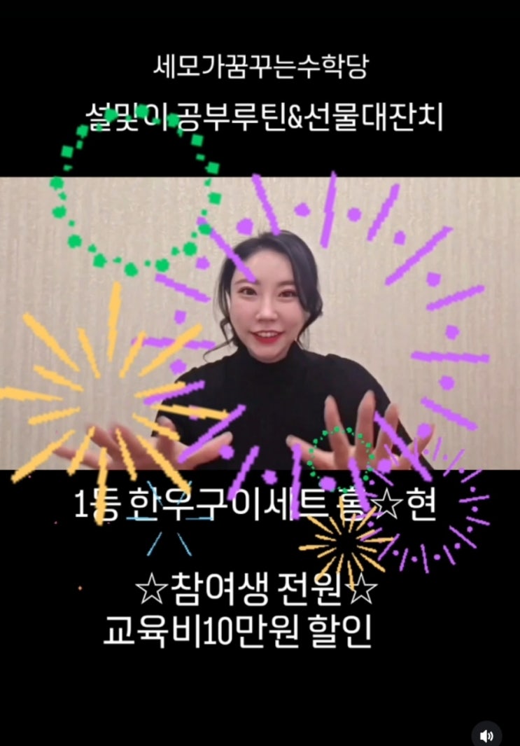 설맞이 공부루틴& 선물 대축제 결과 발표 1등 홍☆현(한우 구이세트 증정) 명절 연휴 동안에도 흐트러지지 않고 공부 루틴을 지켜낸 모습, 칭찬합니다 결과보다 과정이 더 값진 도전이었습니다 도전자 전원에게 교육비 10만원 할인권 증정 이번 이벤트에 참여해준 모든 학생들에게 교육비 10만원 할인권을 제공하겠습니다 명절이라는 많은 유혹 속에서도 스스로를 이겨낸 경험은 분명 아이들 마음속에 큰 자산으로 남을 것입니다 참여해준 모든 친구들 진심으로 고맙습니다 #원주수학 #무실동수학 #재미있는수학학원 <img src="https://blogthumb.pstatic.net/MjAyNjAzMDJfNzMg/MDAxNzcyMzkwMzA0ODY5.XOGOa4EUbyhiMk-42QT-ZOi6_WHYj7LZNEAY_CJJovYg.A1u7ZqPPUk49PC9IaCdlPMZIfuZxvXrz0LYJc9ClzGUg.JPEG/900%A3%DF1772159525969.jpg?type=s3" />