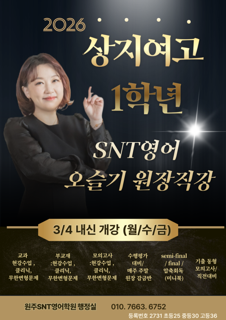 [상지여자고등학교영어학원/ 상지여고영어학원] 2026 상지여고 1학년 SNT영어 오슬기 원장직강 3/4 내신개강 (월수금)