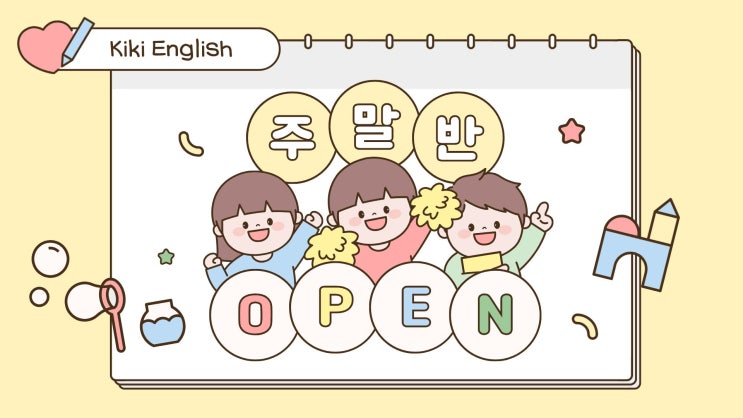 안녕하세요 키키잉글리시입니다! 어느덧 새해가 밝았습니다 모두 새해복 많이 받으시고 늘 평안과 즐거움이 가득한 한해가 되시길 바랍니다 새해를 맞아 평일에는 시간이 도저히 안맞아 어려웠던 친구들! 키키의 수업을 해보고 싶었던 친구들! 주말에만 시간이 가능했던 친구들! 을 위해 주말반을 오픈했습니다 ! ⏰ 요일과 시간은 언제인가요 ? 토요일 10시 / 토요일 11시 2타임 입니다! 몇살이 참여 가능한가요? 20년생 7세친구들 / 21년생 6세친구들 한클래스당 선착순 5명 신청가능합니다 ! ( 22년생 5세 친구들은 금요일 4시로 문의주세요 ) 수업은 어떻게 진행되나요? 원장직강 50분 수업에 액티비티 수....... <img src="https://blogthumb.pstatic.net/MjAyNjAxMDVfMjg1/MDAxNzY3NTkxNDg5NzI3.-xMRF-2pKiQrPfdE_HgDNbgvd9j64-mg2ucdnmAazukg.gPhBfufNF-Mw8loRvt-MtlxsW0ZbT_7tv9Tm8V1j9ckg.JPEG/%C1%A6%B8%F1%C0%BB_%C0%D4%B7%C2%C7%D8%C1%D6%BC%BC%BF%E4.jpg?type=s3" />