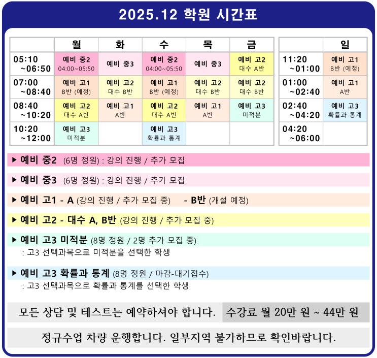 수업시간표 (25/12/15 기준)