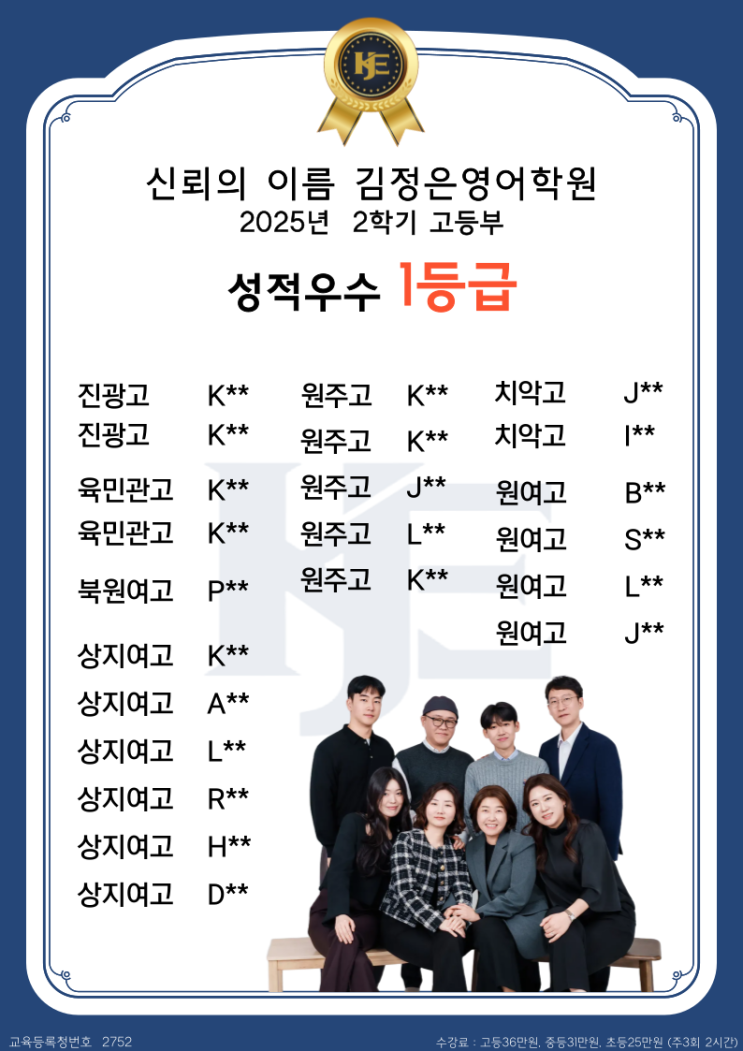 원주 김정은영어학원 2025년 2학기 성적 결과