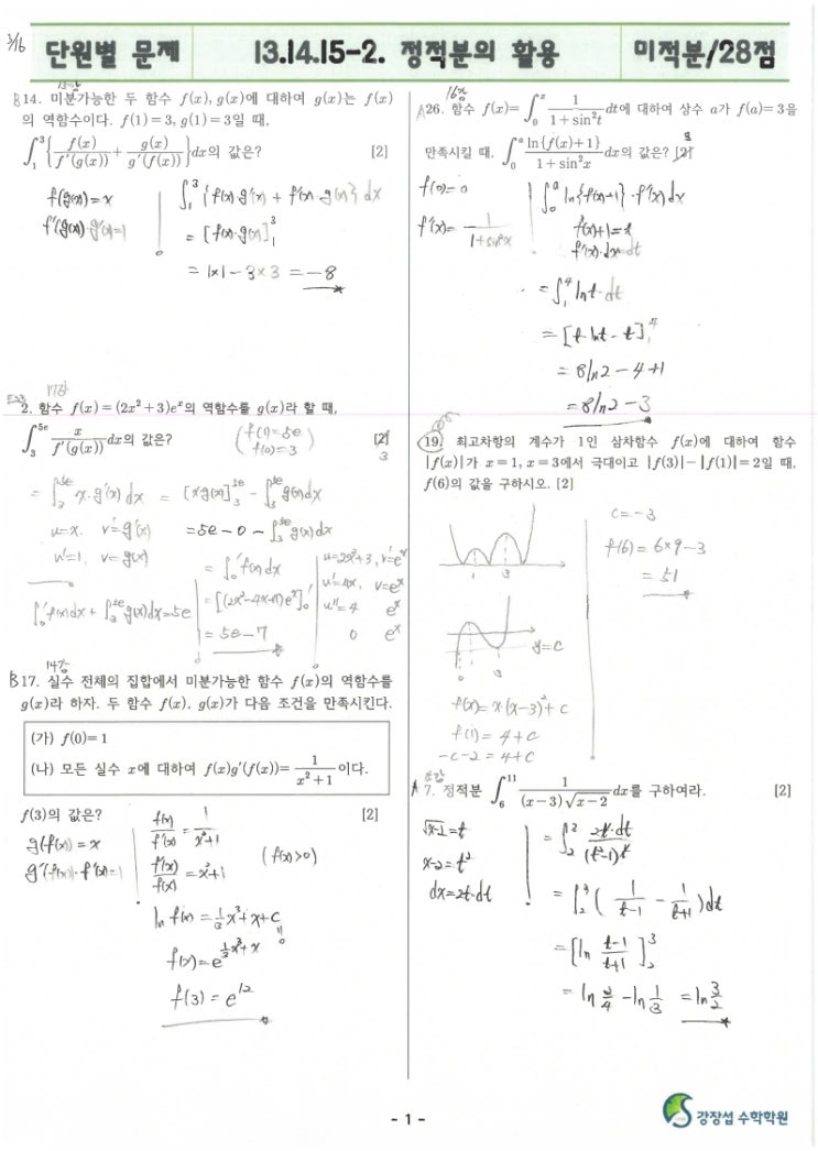 단원별문제-미적-13.14.15-2.정적분의활용-원장풀이