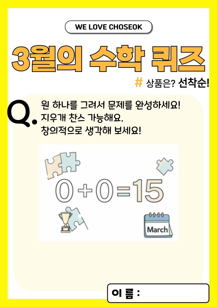 [초석학원] 3월의 재미있는 수학 퀴즈