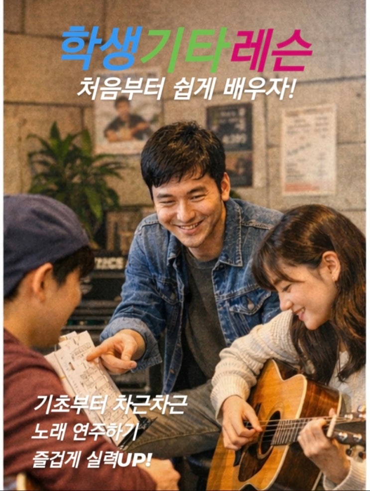 기타, 아직도 유튜브 보고 배우고 계신가요? 처음에는 쉬워 보였는데 코드 바꾸는 것도 어렵고 손가락도 아프고 결국 기타가 방 한쪽에 놓여있지는 않으신가요? 기타는 혼자 배우기 정말 어려운 악기입니다. 하지만 제대로 배우면 생각보다 훨씬 빨리 늘 수 있습니다. 저희 학원은 원주에서 성인 취미 기타와 학생 기타레슨을 함께 운영하는 기타학원입니다. 기타를 처음 잡는 분들도 코드, 스트로크, 아르페지오 기초부터 좋아하는 노래 반주까지 차근차근 배울 수 있습니다. 단순히 코드만 배우는 수업이 아니라 실제로 노래 한 곡을 완주할 수 있는 수업을 진행합니다. 이런 분들이 많이 찾아옵니다 ✔ 기타를 처음 시작하는 분 ✔....... <img src="https://blogthumb.pstatic.net/MjAyNjAzMDlfMTA4/MDAxNzczMDU0MjU1NjQ0.VVA9GY4dEdjgYl2tZdlE1LndxHi-48vs0IHq_xXlgWwg.6pg-gsWU6cOaE8E_kwAgWyqdTsnUucpsLnseHmUcHpUg.JPEG/900%A3%DFScreenshot%A3%DF20260309%A3%DF200148%A3%DFInstagram.jpg?type=s3" />