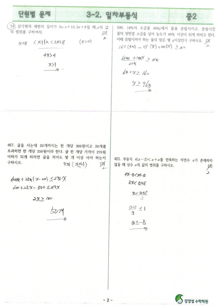 단원별문제-중2-3-2.일차부등식-원장풀이