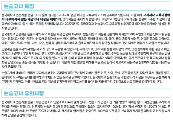 동국대 논술가이드북 발빠른 분석: 2027 인문논술 특징·입결·합격수기