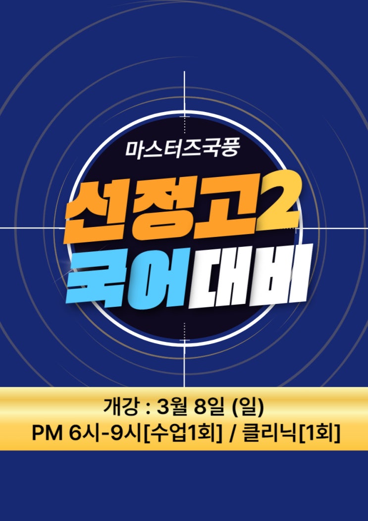 2026학년도 2학년 1학기 선정고2 국어[문학] 내신대비 ◈ 기간 : 3월 8일~ 시험 직전까지 (8주 완성) ◈ 수업시간 : 매주 일요일 6-9시 [3시간 강의 1시간 문제풀이] ◈ 교재 : 창비문학 + 올림포스 학평기출문제집 + 워크북 ◈ 담당 : 원장 선생 직강 ◈ 수업 내용 : ① 시험 범위 교과서 작품 분석 강의 ② 학평기출작품 완벽 분석 강의 ◈ 수업방식 : 시험 범위 작품 분석 강의 → 기출 분석을 통해 작품의 포인트 공략 → 출제 가능한 문제 풀이 → 워크북을 통해 복습 → 출제 예상 문제 풀이(시험 2주 전부터) ◈ 진도 계획( 학교 범위 확정 후 변경될 수 있음) 1주차 : 속미인곡 / 정석가 / 찬기파랑가 / 고시 2주차 : 수라 / 별 헤는 밤....... <img src="https://blogthumb.pstatic.net/MjAyNjAzMDNfMjkg/MDAxNzcyNTM5NDM3NDUw.xNnHpsRUKgrluKe6XVc89R-A6TpQYOpbOLb-nT2U17Qg._S7INy9vTTSMuI81RjTAncnCy0vlhQXfZPYfa06xY1gg.JPEG/002.jpg?type=s3" />