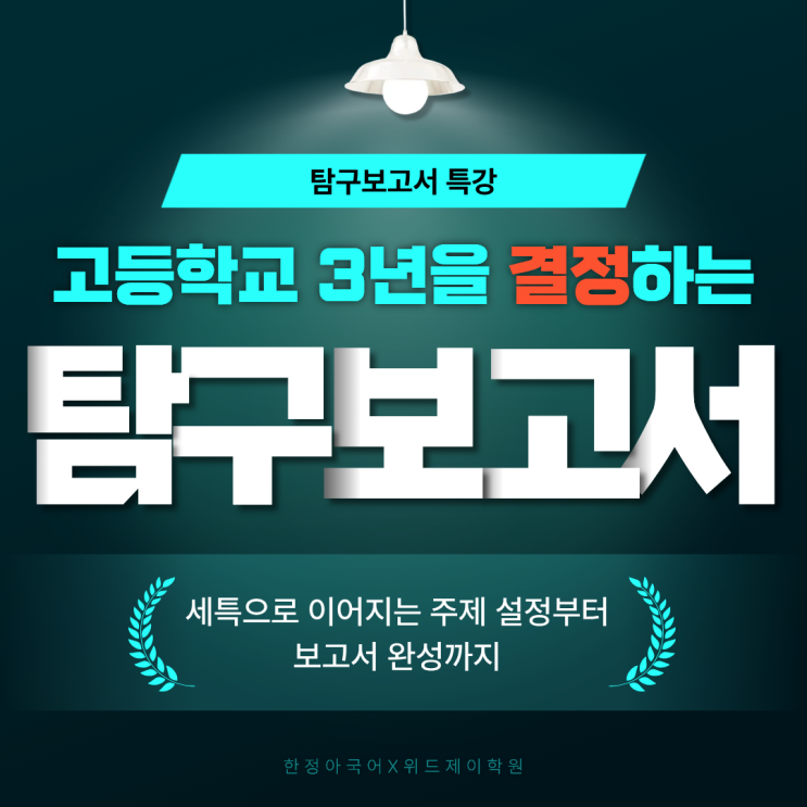안녕하세요 한정아 국어X위드제이학원입니다 고등학교 생활에서 탐구보고서는 이제 선택이 아니라 필수입니다. 학교생활기록부 기재 방식이 변화하면서, 학생의 학업 역량과 진로 관심을 가장 구체적으로 보여줄 수 있는 활동이 바로 탐구보고서이기 때문입니다. 이런 흐름 속에서 우리 학원에서는 고등 3년 내내 활용 가능한 탐구보고서 작성법을 배우는 특강을 시작했습니다. 이번 특강은 단기간에 끝나는 일회성 수업이 아니라, 제대로 쓰는 방법을 배우고, 실제 결과물로 이어지는 과정의 시작입니다. 왜 ‘탐구보고서 특강’이 필요한가요? 많은 학생들이 탐구보고서를 막연하게 어렵다고 느끼거나 인터넷 자료를 찾아 정리하는 수준으....... <img src="https://blogthumb.pstatic.net/MjAyNjAxMjdfMjA2/MDAxNzY5NTEzNDAxODIz.kQPqvKmQ34luwGn5CvuKHZDtr-D7luK1tzzQBxefXjYg.VHcfMhuo0AIKVI6aAWeAIPzT5CBt6Jy1a5ZMZSWetH4g.PNG/%C1%A6%B8%F1%C0%BB_%C0%D4%B7%C2%C7%D8%C1%D6%BC%BC%BF%E4._%283%29.png?type=s3" />