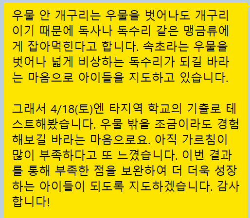 [속초수학학원] 우물 안 개구리가 우물을 벗어나면? 4/18(토) 실전 테스트 결과