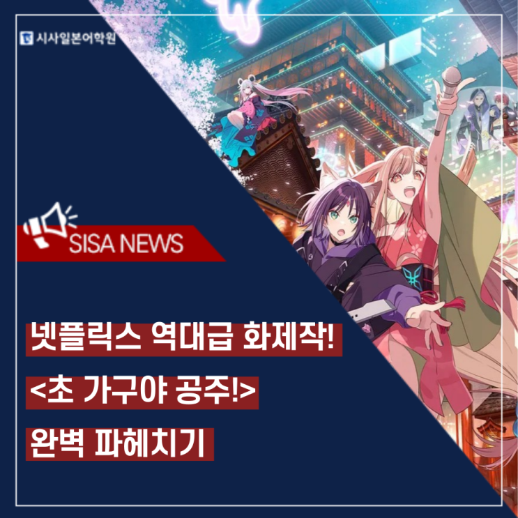 안녕하세요! 시사일본어학원의 미스제이입니다. 지난 1월, 넷플릭스와 극장가를 뜨겁게 달군 화제의 애니메이션 초 가구야 공주! 다들 보셨나요? 이 작품은 고전 설화인 '가구야 공주 이야기'를 현대적으로 힙하게 각색한 애니메이션인데요. 도쿄대 합격을 목표로 숨 가쁘게 살아가는 여고생 '이로하'가 무지갯빛 게이밍 전봇대에서 나타난 신비한 아기 '가구야'를 줍게 되면서 벌어지는 이야기를 담고 있습니다. 특히 가상 공간 츠쿠요미를 무대로 한 라이버 활동과 보컬로이드 명곡들이 얽히면서 눈과 귀를 완벽하게 사로잡죠! 길게 설명할 것 없이, 작품의 분위기를 단번에 느낄 수 있는 가슴 찡한 명대사 4가....... <img src="https://blogthumb.pstatic.net/MjAyNjAyMjdfMTA1/MDAxNzcyMTg0MTY0NjQz.N-QKzqjOk56TlxPq0OXcblyJRZ6qSO6-fJX4_nfWIB8g.BilcQi4UI5lyAILce9dl40VH_E2PBgbR0d1PF5zJPX0g.PNG/%BD%E6%B3%D7%C0%CF_%EC%ED_%F1%E9_-002_%285%29.png?type=s3" />