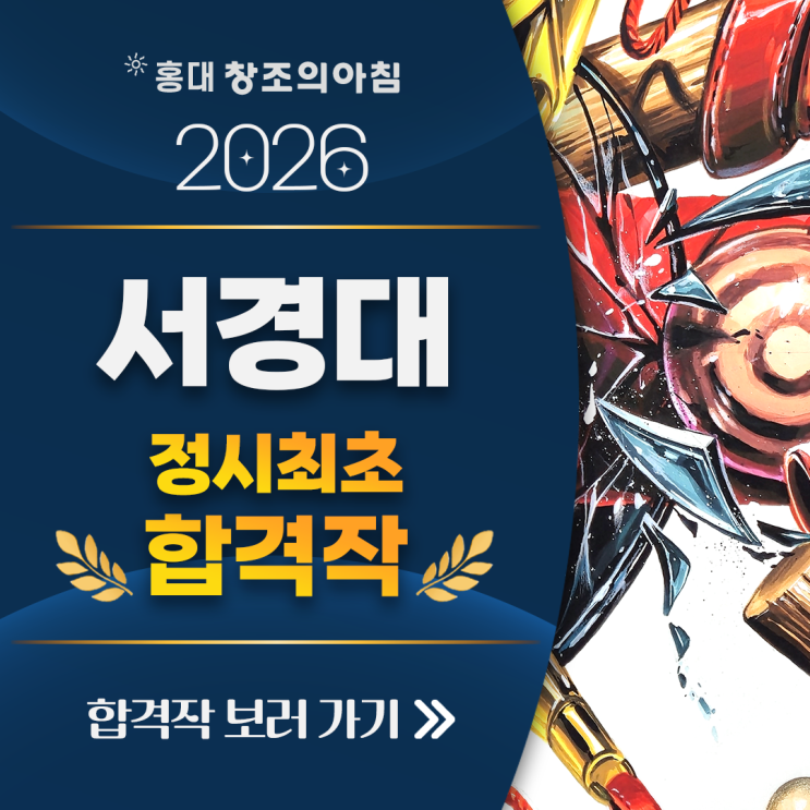 2026학년도 서경대학교 LF라이프스타일 기초디자인 정시최초합격 재현작 공개! 안녕하세요! 홍대 창조의아침 미술학원입니다 :) 오늘은 실기 비중이 매우 높아 실전 실기력이 무엇보다 중요한 서경대학교 정시최초합격작을 소개해 드리려고 합니다. 좁은 합격의 문을 뚫고 당당히 최초 합격을 거머쥔 우리 홍대 창조의아침 학생의 실기 실력, 지금 바로 확인해 볼까요? ✨ 우선, 실기고사 당일에 출제된 문제는 위와 같습니다. 제시물은 디퓨저와 고리가 달린 끈이 제시되었고, 제시어는 집중이었습니다. 서경대학교 정시최초합격! LF_라이프스타일디자인 [기초디자인] 나O주 홍익디자인고졸 디퓨저의 투명한 질감 표현, 디퓨저 막대의 나무 질감....... <img src="https://blogthumb.pstatic.net/MjAyNjAyMjBfMjc3/MDAxNzcxNTgxNDE1OTg1.8iaS2b_f13Jn29FZS8V9G9x76LjSlLIRJ08BSi209Vog.O5PuSSGCEM5yhU_vnL36ZDboFdxqsjhUlGNLqJJ7OWIg.PNG/%C7%D5%B0%DD%C0%DB_%BA%B8%B7%AF%B0%A1%B1%E2_%C3%D6%C1%BE4%B4%EB3_2.png?type=s3" />