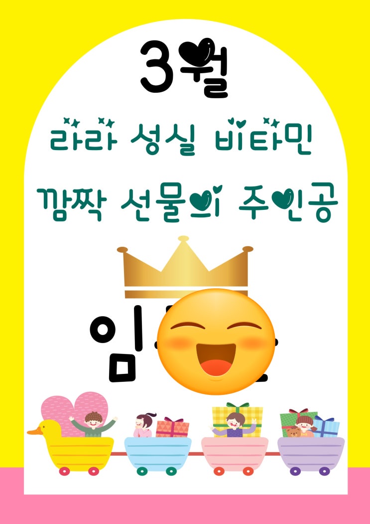 안녕하세요^^ 라라음악학원입니다. 라라에서는 꾸준함이 중요한 피아노 수업을 위해 매월 출석 이벤트를 하고 있어요. 3월의 라라 성실 비타민을 소개합니다! 이번 달 주인공은 라라에서 수업한지 이제 1년이 된, 체르니 과정의 아이에요. 피아노 교육은 단순히 악보를 읽는 법을 배우는 것을 넘어, 배운 것을 내 것으로 만드는 과정이 무엇보다 중요한데요. 이 아이는 그 과정에서 아주 좋은 강점을 보여주고 있어요. 레슨 때 배운 것과 다르게 연습할 때 본인이 편한 방식대로 연주하려는 아이들이 있는데, 이 아이는 레슨 시간에 수업한 내용 하나하나를 기억하고 배운 그대로 꼼꼼하게 연습해오는 아이예요. 그래서 레슨 할 때 “아, 정말 꼼....... <img src="https://blogthumb.pstatic.net/MjAyNjAzMDVfMTkz/MDAxNzcyNzIwMzg0NTIx.OKMu3cwyJNnOTjOqIsjujTI485rcZ5tjUx0QgIjug6Qg.lF9gCOZVxcyqNwxGF6_Y8kTDPfzJss7NZcLyV65UPR8g.JPEG/%C1%D6%C0%CE%B0%F82603.jpg?type=s3" />