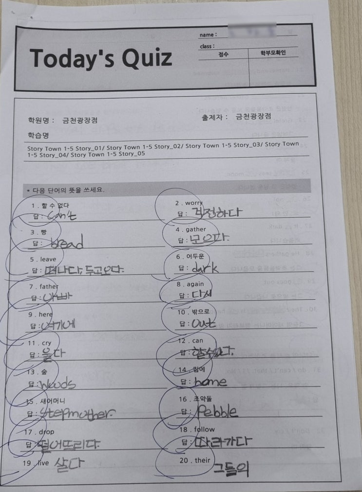 금천동 채선생영어&미랭네영어수학, 주간 TEST로 학습 공백을 막습니다