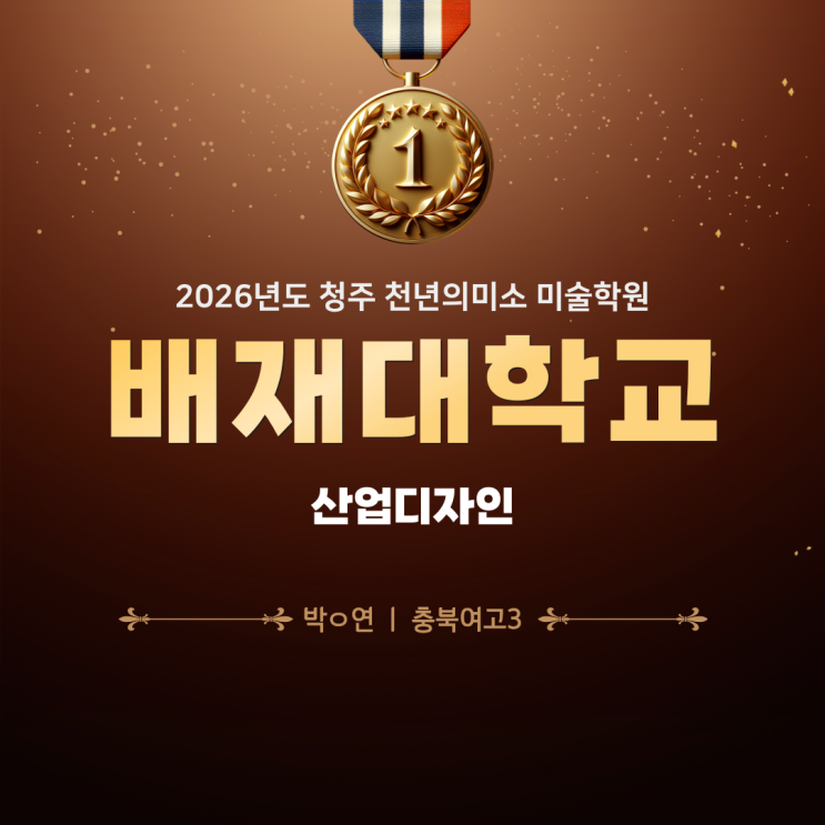 안녕하세요! 미대 입시 합격으로 가는 길, 청주 천년의미소 미술학원입니다! 올해도 끝까지 최선을 다해준 우리 수험생 여러분, 정말 고생 많았습니다. 그리고 무엇보다, 2026학년도 미대 입시 합격을 진심으로 축하합니다! ✨ 배재대학교 산업디자인 / 박O연 박ㅇ연 학생의 새롭게 시작될 대학 생활이 설렘과 성장으로 가득하길 진심으로 응원합니다. 앞으로도 학생 한 사람 한 사람의 가능성을 믿고, 끝까지 함께 고민하고 성장하는 천년의미소가 되겠습니다. Instagram | @cheongju_cheonmi <img src="https://blogthumb.pstatic.net/MjAyNjAyMTdfMTA0/MDAxNzcxMjk4NDg1OTgy.8PEJ4mtKSmRsSsHMjlNFVMm-Aru7shSTB1U3Tqg_wHog.Bspw87_y_hqWHf6yWB9vwc8O5u75nNp81uJC3l_fyTUg.PNG/013.png?type=s3" />