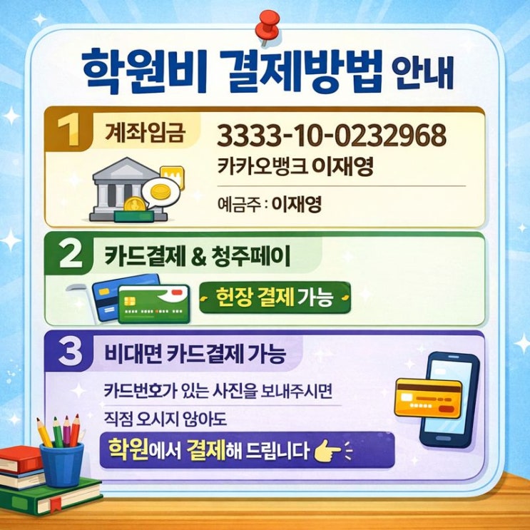 삼성영어용정영어교습소 2026년 학사일정 및 원비납부방법