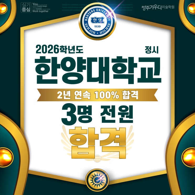 합격으로 증명하다!! DESIGN GAUDI 안녕하세요~ 청주미술학원 가우디미술학원이에요 ㅎ 강추위가 열흘이 넘게 맹위를 떨치고 있는 가운데 추위를 녹여줄 반가운 소식을 가져왔는데요~ 2026학년도 정시에서도 놀라운 합격 소식이 수시에 이서 계속 이어지고 있네요 ㅎㅎ 2025학년도 한양대 3명 합격 에이어 올해에도 3명 지원해서 3명 모두 합격하는 2년 연속 100% 합격 쾌거를 이어가고 있답니다 ㅎㅎ 정시 합격 발표 마감일인 2월 2일(월)까지 아직 발표 전인 대학에서도 좋은 소식 있길 기원해 봅니다.ㅎ 2026 한양대 디자인계열 3명 합격! 정시 3명 지원 3명 합격!! - 김 0 희 중 0 여 고 졸 - 김 0 아 충 0 여 고 3 - 정 0 정 진 0 여 고 졸....... <img src="https://blogthumb.pstatic.net/MjAyNjAxMjlfMjg0/MDAxNzY5NjkxNjIxNTc2.dGZK2qedp2bNb3xoGhMtJ5cVut5IDOlbd72NxGIVmQ8g.GF7gs7JXeOrDai7bBkxvoHHtuwWIZxgtI_aGXpcQN9kg.JPEG/%C3%BB%C1%D6%B9%CC%BC%FA%C7%D0%BF%F8%2C_%C3%BB%C1%D6%C0%D4%BD%C3%B9%CC%BC%FA%C7%D0%BF%F8_%C3%BB%C1%D6%B0%A1%BF%EC%B5%F0%B9%CC%BC%FA%C7%D0%BF%F8_%B5%F0%C0%DA%C0%CE%B0%A1%BF%EC%B5%F0_%C7%D1%BE%E7%B4%EB3%B8%ED%C7%D5%B0%DD.jpg?type=s3" />