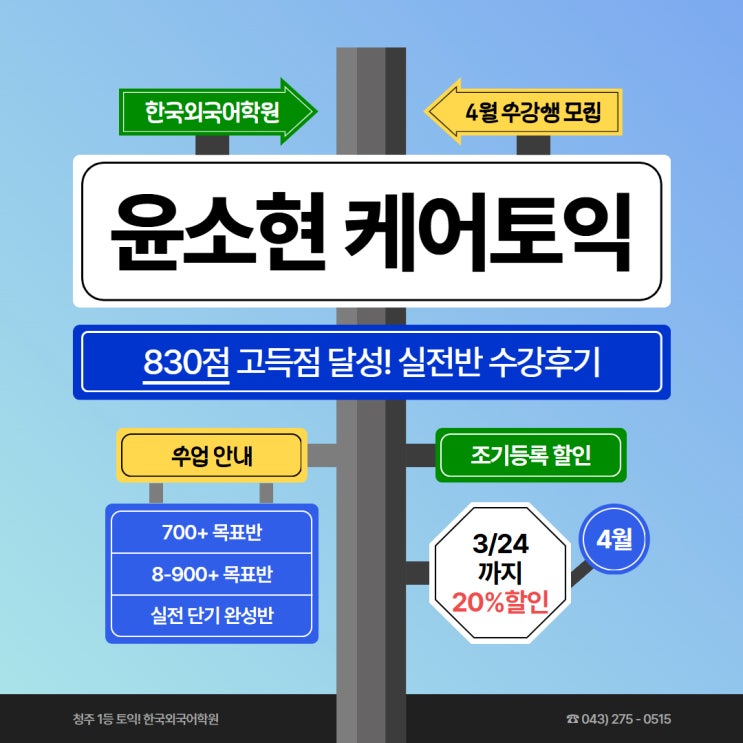 [청주 토익학원] 830점 달성할 수 있었던 이유! 파트 5가 약하다면 케어토익에서 해결하세요! _수강후기/수업정보/추천